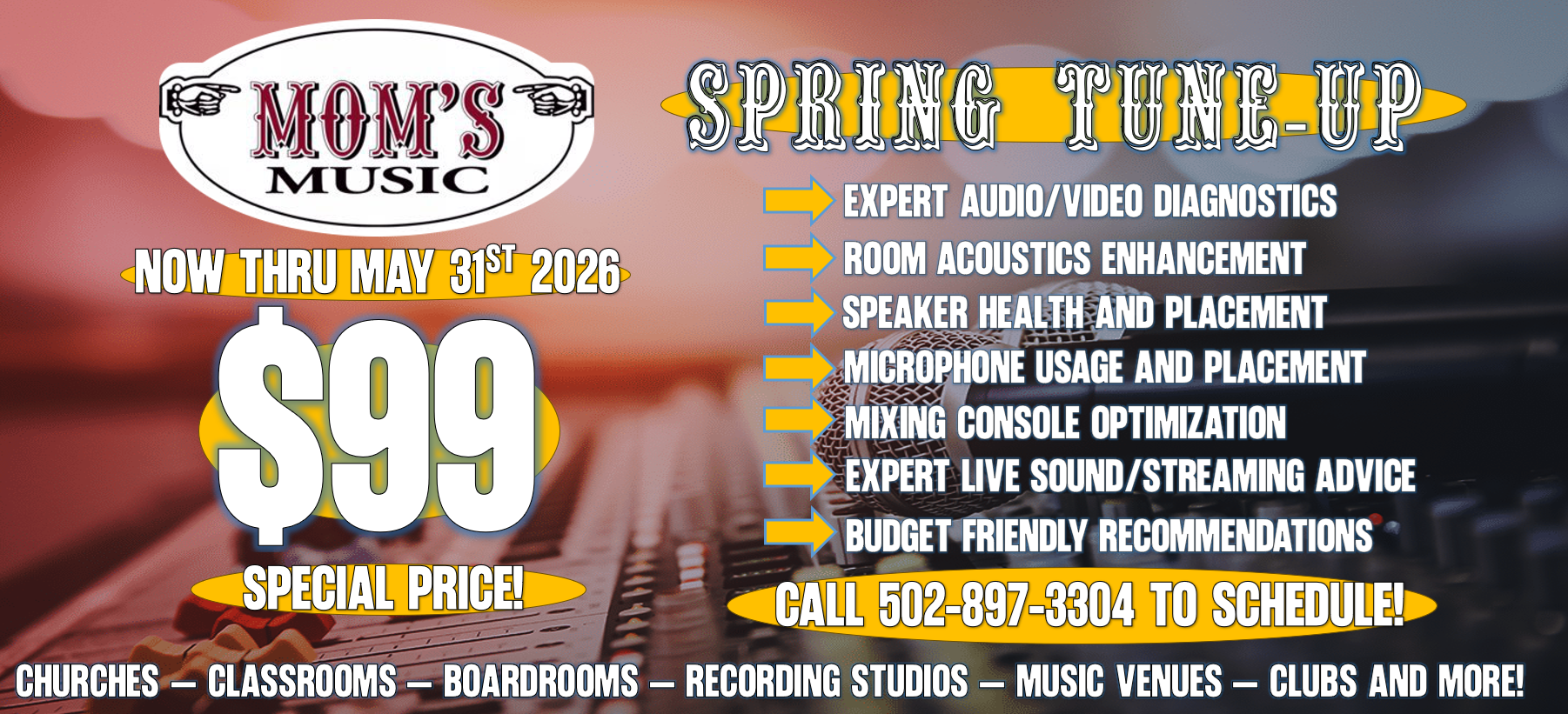 Mom’s Pro Audio has been designing and installing business sound systems and training their staffs for over 30 years. From wireless microphone systems to conference and portable systems, we will walk through the process and assist you with your needs. We carry all major brands of audio products and partner with companies like Yamaha, Electro Voice, and JBL to insure the system design is flawless. We offer free system consultation and design, and as always, our 100% money back guarantee.