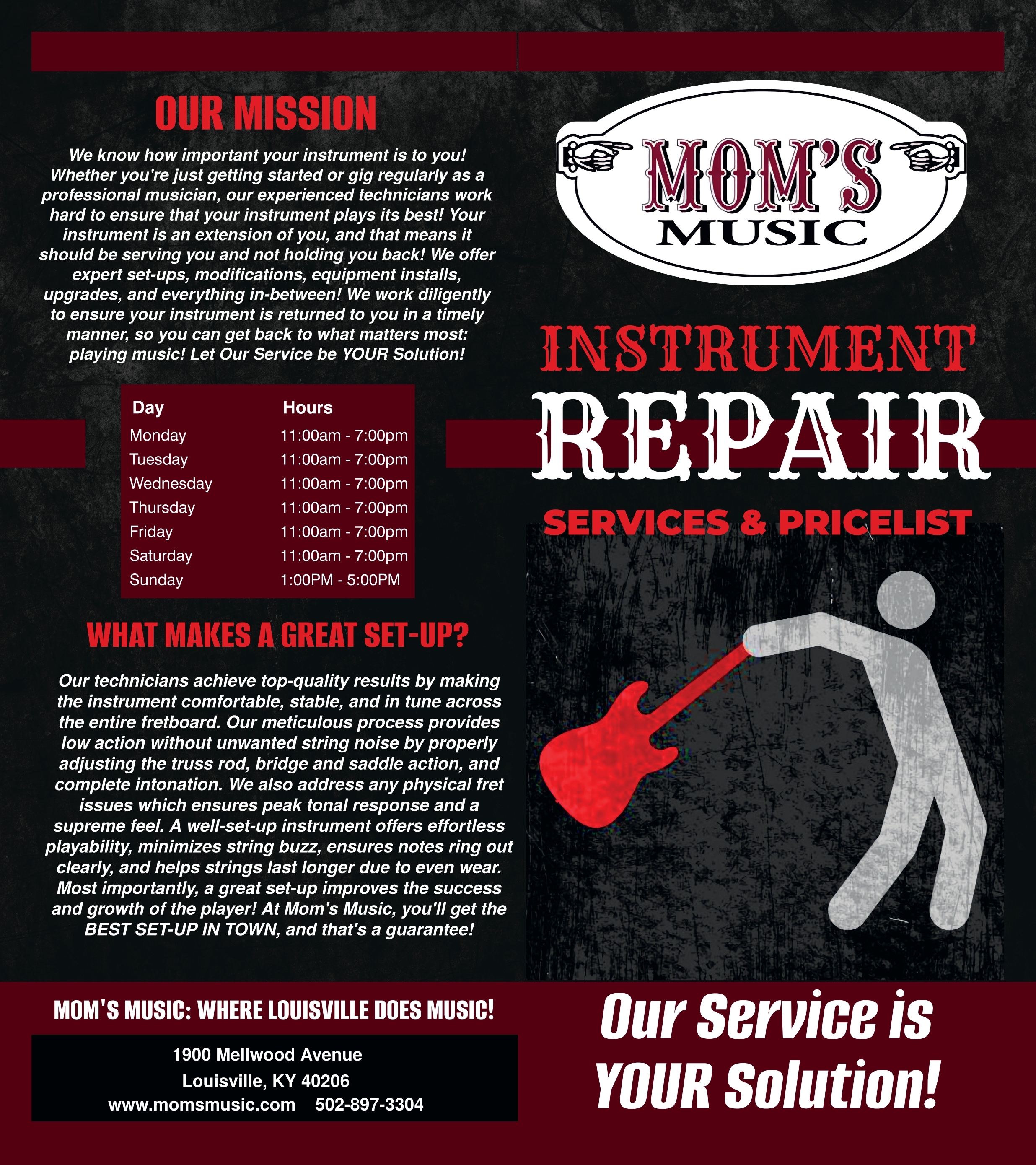 Mom's Offers Guitar Repairs! Check out our packages below, and if you have any questions, please fill out the contact form at the bottom!