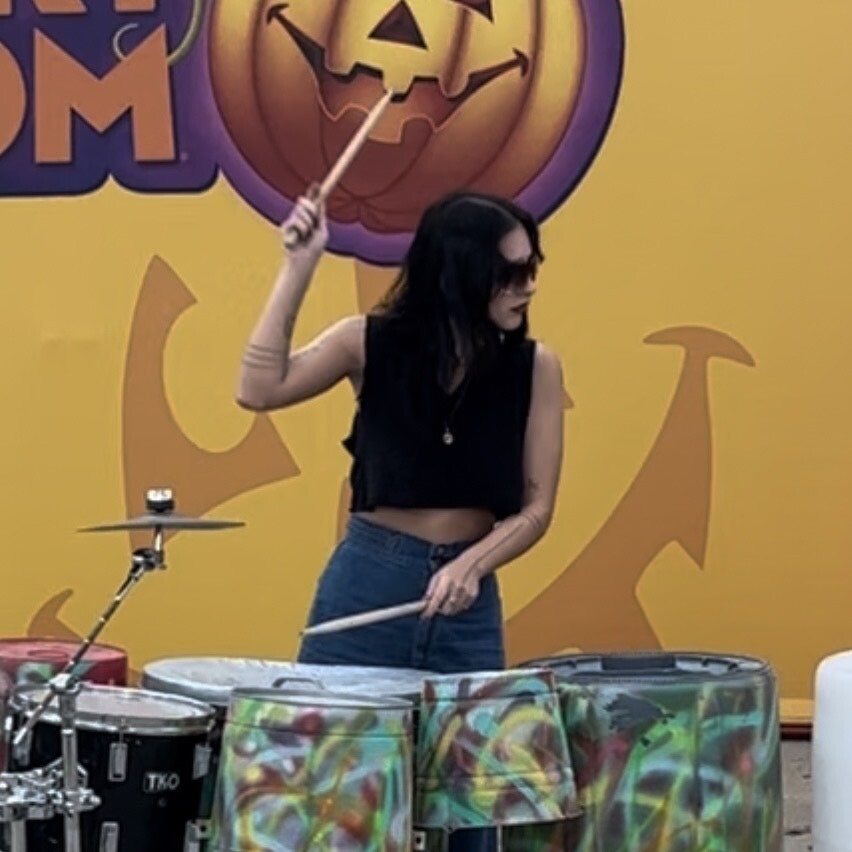 Amanda comes to us with a background in marching percussion, jazz drumming, 4 years of NBA drumline, 2 years of theme park drumming, and 7 years of being a percussion educator. Her performance experience includes 3 years as a bass drummer with WGI world class drumline groups like ConneXus Percussion in 2020, as well as Cap City Percussion 2021 & 2022 in which the group was 1 of 15 groups that made World Class Finals. Her teaching ranges from high school marching bands to professional Drum Corps in DCI such as Jersey Surf and Colt Cadets. Her playing styles ranging from jazz to nu metal. In all of these experiences, Amanda has always been one of the only girl drummers / educators involved - if not the only one. Her goal as an educator is to help anyone especially female presenting people feel great, included, and powerful just like everyone else!
